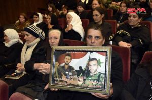 أقامت غرفة صناعة وتجارة طرطوس اليوم احتفالية لتكريم مئة أم من أمهات الشهداء اللواتي قدمن أكثر من شهيد على امتداد المحافظة وذلك في صالة المركز الثقافي العربي بمدينة طرطوس تخللها عرض فيلم وثائقي بعنوان “سورية الأم” وفقرات فنية وأغان وطنية.