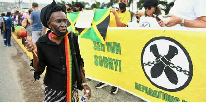 وذكرت وكالة فرانس برس أن المتظاهرين الذين تجمعوا أمام مقر المفوضية العليا البريطانية طالبوا بأن تدفع العائلة البريطانية المالكة تعويضات للمتضررين وأن تعتذر عن دورها في تجارة الرقيق التي جلبت مئات الآلاف من الأفارقة إلى الجزيرة ليعانوا في ظل ظروف غير إنسانية.
