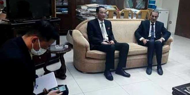 بحث معاون وزير التربية الدكتور عبد الحكيم الحماد مع القائم بأعمال سفارة جمهورية كوريا الديمقراطية الشعبية بدمشق كيم هي ريونغ آلية تعزيز العلاقات التربوية وتبادل الخبرات والتجارب بما يسهم في توطيد العلاقات بين البلدين.