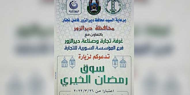 وذكر عضو المكتب التنفيذي لمحافظة دير الزور حسان المغير في تصريح لـ سانا أن السوق يقام بالتعاون مع غرفة تجارة وصناعة دير الزور وفرع المؤسسة السورية للتجارة ويتضمن عرض المنتجات التي تحتاجها الأسرة خلال شهر رمضان بأسعار مخفضة وقريبة من سعر التكلفة إضافة إلى تقديم عروض عديدة من قبل التجار المشاركين وذلك بهدف تخفيف الأعباء الاقتصادية عن