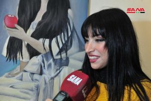 أما مايا مرعي فشاركت بلوحة تمثل المرأة بملامح بسيطة تدل على التراث القديم وجمال الشكل والأزياء ورأت أن المشاركة بهذا المعرض الجماعي تمنحها فرصة لتطوير موهبتها من خلال الاطلاع على تجارب الآخرين.