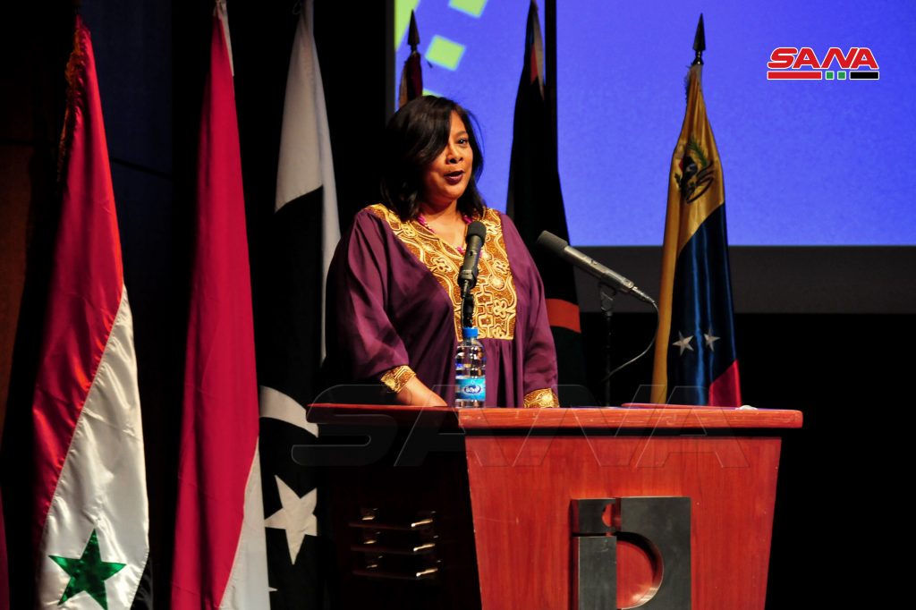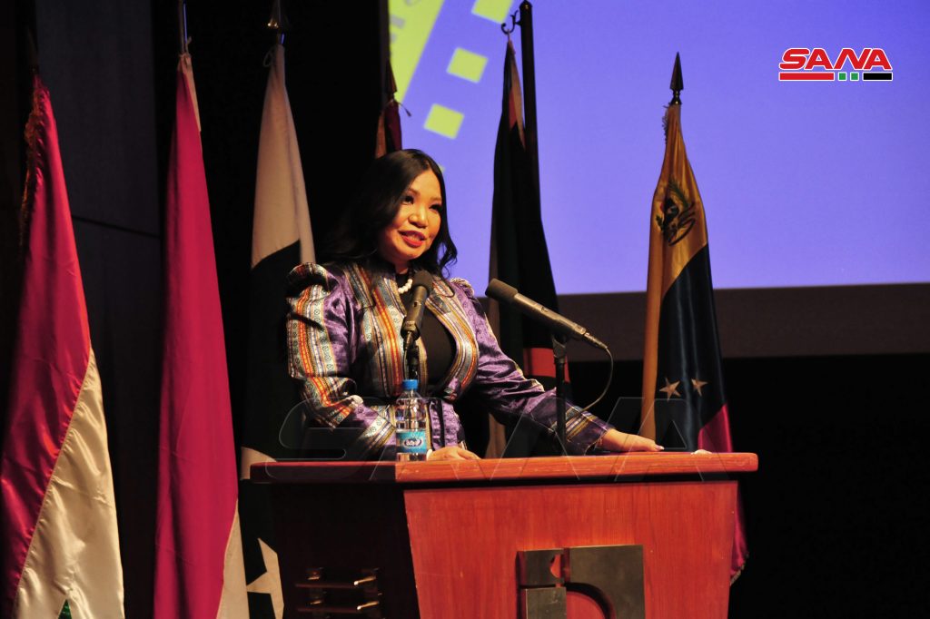 القائمة بأعمال السفارة الفلبينية في دمشق فيدا ثريا فيرزوسا أشارت في كلمة لها إلى أن السينما اليوم هي بمنزلة نسخة محدثة من الحكواتي الذي كان يبهرنا بقصصه في الماضي بما فيها من متناقضات بين المأساة والأمل مبينة أن شخصيات الأفلام الـ 15 المشاركة في المهرجان تعكس سعي النساء لتحقيق السعادة والنهوض من الشدائد لأنهن قادرات على إحداث تغيير في حياتهن وحياة الآخرين.