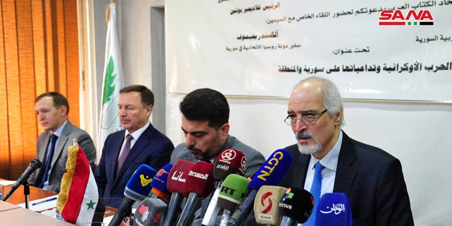 وخلال لقاء خاص استضافه اتحاد الكتاب العرب اليوم شارك فيه سفير روسيا في دمشق ألكسندر يفيموف أوضح الجعفري أن هناك ضخاً هائلاً من المعلومات حول الأزمة الأوكرانية فالغرب يكذب علينا ونحن نعيش كذبة سياسة غربية ويعوزنا الكثير من التثقيف السياسي لفهم ما يجري في أوكرانيا لافتاً إلى أن هدف الغرب نهب الثروات والاحتلال وابتزاز الشعوب وهو يعادي على الدوام الرموز الوطنية للدول التي تفهم السياسة وفق المبادئ وليس المصالح.