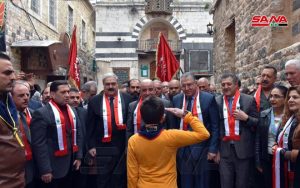 في حين أكد الدكتور محمد عزت عربي كاتبي رئيس منظمة طلائع البعث أهمية التشاركية مع وزارات التربية والثقافة والسياحة والمديريات المعنية لإقامة هذه الملتقيات التي تعد رسالة وترجمة لتمسكنا بعاداتنا وتقاليدنا وإرثنا التراثي العميق عبر آلاف السنين إضافة إلى رمزية المكان الذي استضاف الملتقى والتأكيد على أن مرحلة إعادة الإعمار تبدأ من التمسك بالأصالة والتراث.