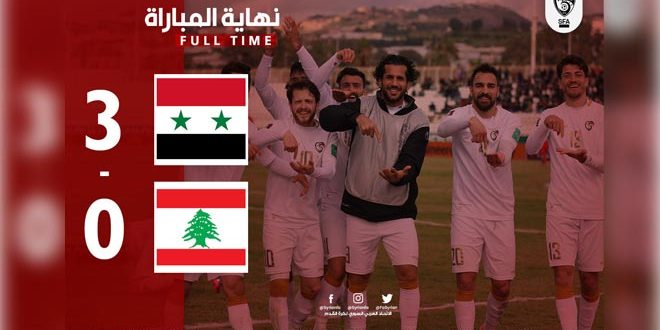 فاز منتخب سورية لكرة القدم على نظيره اللبناني بثلاثة أهداف دون رد في اللقاء الذي جمعهما اليوم على ملعب صيدا في لبنان بالتصفيات الآسيوية المؤهلة لكأس العالم.