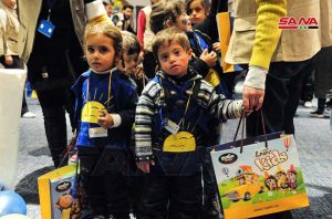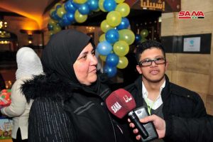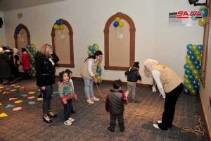 أطفال من جمعيات ومراكز تعنى بمتلازمة داون انضموا اليوم إلى نشاطات ترفيهية وموسيقية وتعليمية في مهرجان “أنت صديقي” الذي ينظمه فريق عطاء التطوعي بالتعاون مع وزارات الشؤون الاجتماعية والعمل والتربية والسياحة في فندق شيراتون بدمشق.