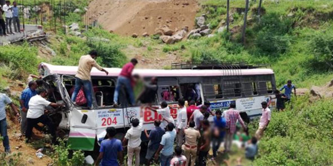 لقي 7 أشخاص مصرعهم وأصيب العشرات بجروح إثر سقوط حافلة في واد بولاية أندرا براديش جنوب الهند.