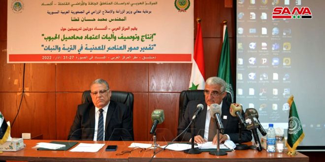 بدأ المركز العربي لدراسات المناطق الجافة والأراضي القاحلة (أكساد) بالتعاون مع وزارة الزراعة والإصلاح الزراعي صباح اليوم بتدريب ثلاثين مهندساً وخبيراً زراعياً من سورية وفلسطين والأردن وليبيا وتونس والعراق وموريتانيا على إنتاج وتوصيف وآليات اعتماد محاصيل الحبوب وتقدير صور العناصر المعدنية في التربة والمياه.