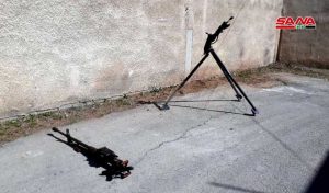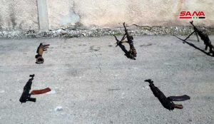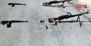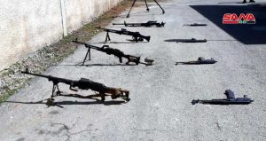 وذكر مصدر في الجهات المختصة في حمص لمراسل سانا أنه تم ضبط أسلحة وذخائر مخبأة تحت الأرض في أحد المنازل بريف حمص الشمالي من مخلفات التنظيمات الإرهابية وشملت بنادق آلية ورشاشات بينها (بي كي سي) و(دوشكا) وذخائر متنوعة.