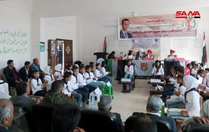 حضر برلمان الأطفال أمين فرع الرقة لحزب البعث العربي الاشتراكي عبد العزيز العيسى وأعضاء قياده الفرع وأعضاء مجلس الشعب عن المحافظة ورئيس مجلس المحافظة ومديرو الدوائر الرسمية.