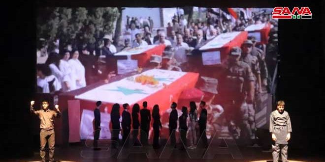 وتناول العرض قضايانا العربية عموماً والأحداث التي حفل بها القرن العشرين مركزاً على مواجهة الشعب السوري بكل فئاته للاستعمار والصهيونية.