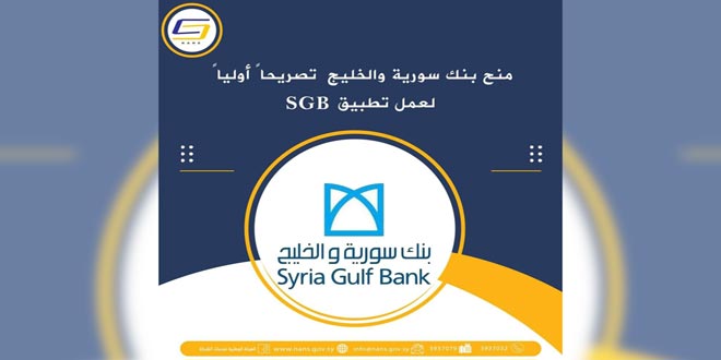 منحت الهيئة الوطنية لخدمات الشبكة تصريح عمل أولي لتطبيق الكتروني في مجال الخدمات المصرفية لبنك سورية والخليج على تطبيقها “اس جي بي”.