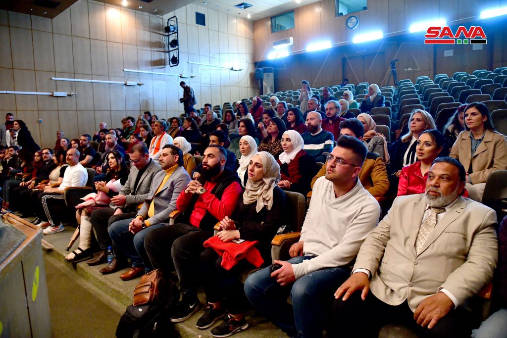 بمناسبة عيد الطالب العربي السوري كرم الاتحاد الوطني لطلبة سورية مساء اليوم المتفوقين والمتميزين من خريجي دبلوم الطاقة الحيوية والتنمية الذاتية في نادي الطلبة للغات والمعلوماتية المركزي بدمشق وعدداً من الشخصيات الإعلامية والطلابية الفاعلة في هذا المجال وذلك على مسرح مدينة الشباب بالمزة.