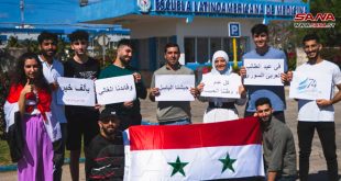 وأعرب الطلبة عن ثقتهم بخروج سورية منتصرة من الأزمة بفضل تضحيات جيشها وصمود شعبها وحكمة قيادتها.