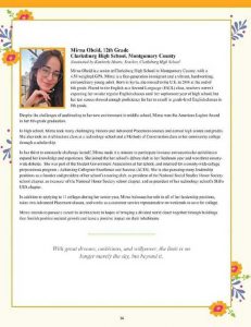 ميرنا ذات الـ 18 ربيعاً تستذكر مراحل دراستها منذ قدومها مع أهلها إلى أمريكا وهي في الصف السادس حيث بدأت بالتميز من خلال حصولها على أعلى علامة في الامتحان النهائي لمادة الاجتماعيات والتي تساعدها على التخرج في أي جامعة أمريكية من غير التقديم على بعض المواد.