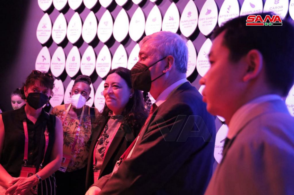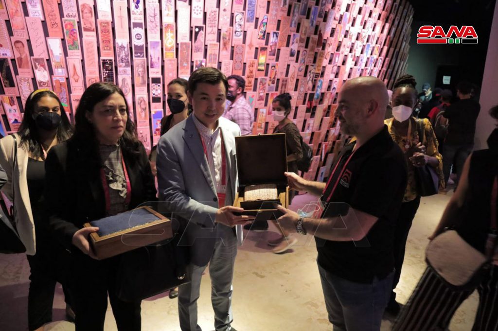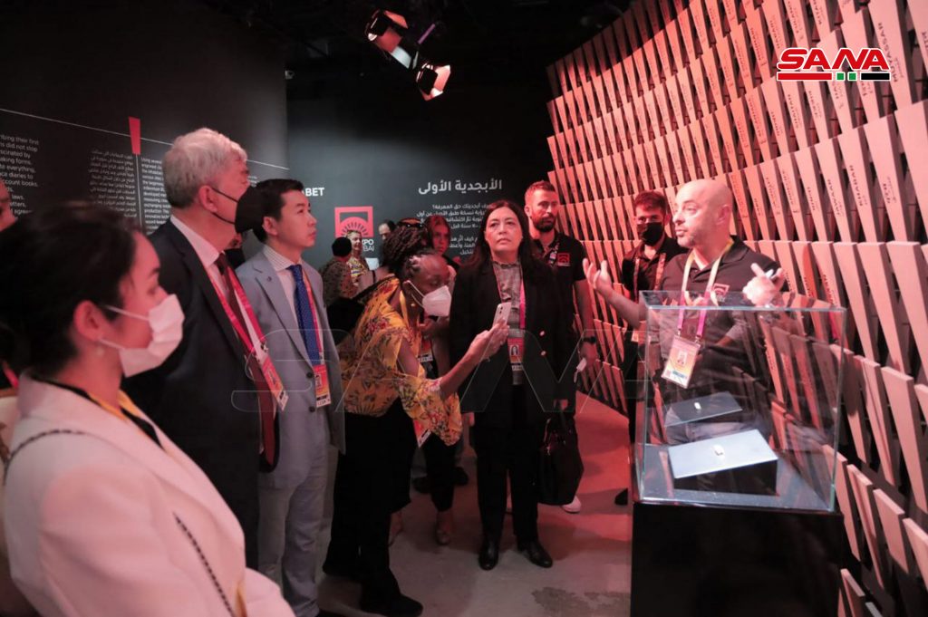 ورافق الوفد خلال الزيارة سفيرة سورية الدائمة لدى منظمة اليونيسكو لمياء شكور ومدير الجناح السوري المهندس خالد الشمعة.
