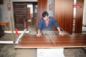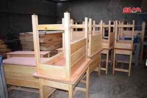 كما اطلع معاون وزير التربية الدكتور بني المرجة على واقع العمل الميداني في ورشة النجارة بمعهد التقاني الصناعي الثالث بحي سليمان الحلبي ونسب الإنجاز المحققة حيث بين المهندس مصطفى عبد الغني أنه بلغ عدد المقاعد التي صنعت في الفصل الدراسي الثاني 720 مقعداً مدرسياً بالتعاون مع المجلس النرويجي للاجئين بالإضافة إلى تصنيع 1150 مقعداً مدرسياً من خلال الخشب المقدم من الموازنة الاستثمارية للخدمات الفنية.