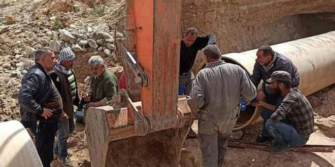 تمكنت ورشات الصيانة في المؤسسة العامة لمياه الشرب في دير الزور من إصلاح العطل الطارئ على الخط الرئيسي الصاعد باتجاه خزان البروك المغذي للمدينة وإدخاله بالخدمة وإعادة ضخ المياه منه بشكل طبيعي.