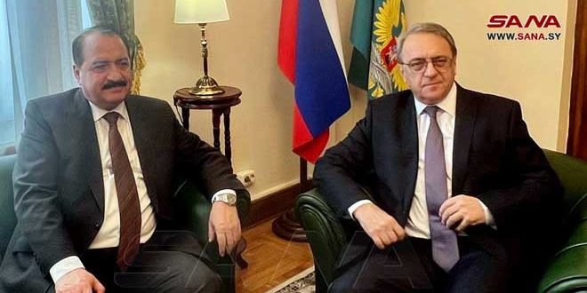 بحث الممثل الخاص للرئيس الروسي لشؤون الشرق الأوسط وبلدان إفريقيا نائب وزير الخارجية ميخائيل بوغدانوف مع سفير سورية في موسكو الدكتور رياض حداد عدداً من القضايا الدولية والإقليمية الملحة مع التركيز على المسائل ذات الاهتمام المشترك والمتعلقة بتطور الوضع في أوكرانيا وما حولها.