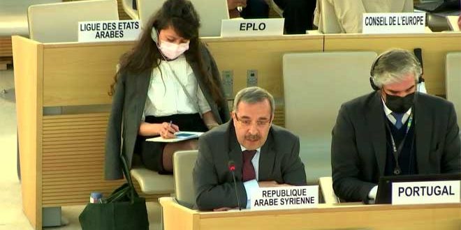 أكدت سورية رفضها الكامل لمشروع القرار البريطاني حول “حالة حقوق الإنسان في سورية” مبينة أنه نموذج عن القرارات المسيسة التي تتعارض مع مبادئ الموضوعية التي قام عليها المجلس ويتجاهل الإرهاب التكفيري الذي يهدد حياة السوريين والعدوان والاحتلال والحصار الاقتصادي الذي تمارسه الدول الراعية لمشروع القرار.