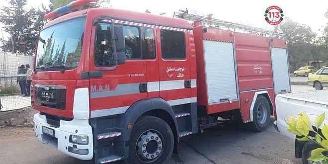أخمد عناصر فوج إطفاء دمشق اليوم حريقاً نشب ضمن مئذنة جامع الأبرار بمشروع دمر.