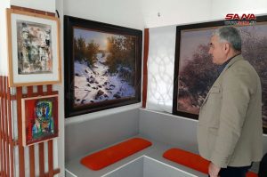 لوحات تشكيلية تنوعت أساليبها الفنية بين التعبيرية الواقعية والتعبيرية التجريدية والواقعية الحديثة ضمها المعرض الفني “آفاق” الذي أقامه فرع اتحاد الفنانين التشكيليين في استديو الفنان التشكيلي الدكتور عصام أبو عسلي في مدينة السويداء.