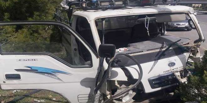 أصيب سائق شاحنة صغيرة برضوض خفيفة جراء حادث سير على طريق مشروع دمر بدمشق باتجاه دوار الكنيسة.
