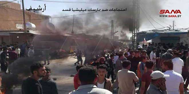 وبينت مصادر أهلية لمراسل سانا أن مجموعات مسلحة لميليشيا قسد حاصرت المخبز منذ الساعة الرابعة عصراً من جهة مدينة الشباب والمركز الثقافي وصادرت مادة الخبز من المواطنين ومنعتهم من الدخول إلى الفرن بالتزامن مع إقدامها على طرد العاملين فيه.
