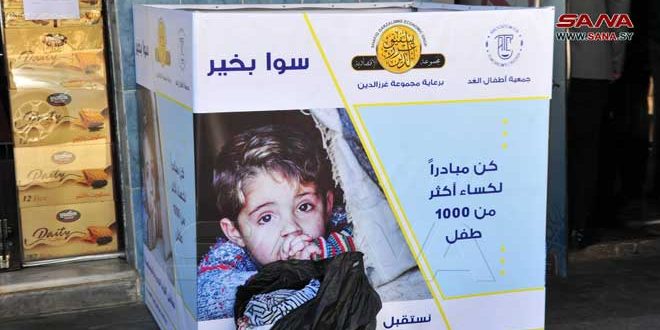 أطلقت جمعية أطفال الغد في السويداء اليوم بالتعاون مع مجموعة غرز الدين التجارية حملة (سوا بخير) الهادفة لإكساء أكثر من 1000 طفل من أطفال العائلات الأشد احتياجاً بالمحافظة وتستمر لمدة 15 يوماً.