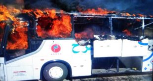 تعرض بولمان نقل ركاب على خط اللاذقية-حلب عند مدخل مدينة معرة النعمان للاحتراق نتيجة عطل فني بالمحرك أدى إلى اشتعال النيران بخزان الوقود للبولمان واحتراقه بالكامل واقتصرت الأضرار على الماديات.