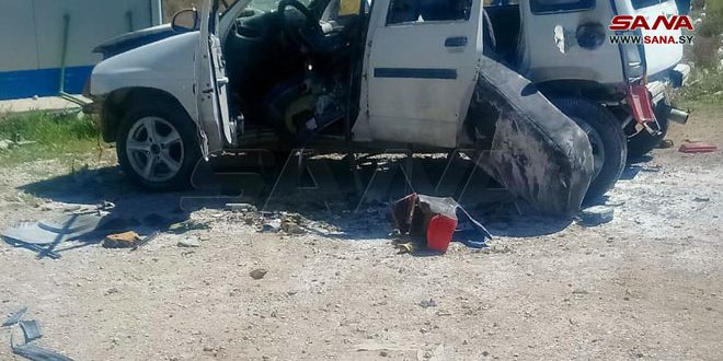وذكر مصدر في قيادة شرطة ريف دمشق لـ سانا أن “عبوة مفخخة انفجرت بسيارة خاصة من نوع (دايو) كانت مركونة بالقرب من مبنى المالية بمدينة قطنا بالريف الجنوبي الغربي ما تسبب باحتراق السيارة وأضرار بسيطة بالمكان”.