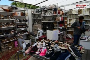 البائع محمد نور بغجات أشار إلى أنه يقدم تشكيلة واسعة جداً من الحقائب والأحذية النسائية بمختلف أشكالها بأسعار منافسة ومشجعة مبيناً أن أسعار الحقائب النسائية تصل إلى نحو 14 ألف ليرة فيما يصل سعر الحقيبة المدرسية إلى 20 ألف ليرة.