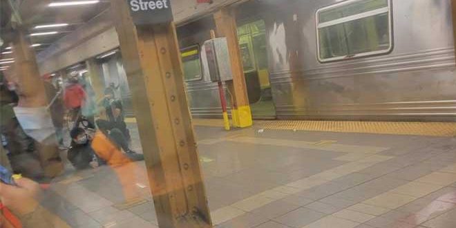 وأظهرت صور نشرت عبر الانترنت أرضيات منصة مترو الأنفاق ملطخة بالدماء وتوقفت حركة قطارات المترو في نيويورك عقب الهجوم مباشرة فيما فرضت الشرطة طوقاً أمنياً حول محيط موقعه.