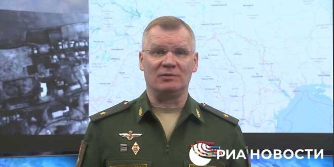 أعلن المتحدث الرسمي باسم وزارة الدفاع الروسية اللواء إيغور كوناشينكوف أن القوات المسلحة الروسية تواصل تنفيذ العملية العسكرية الخاصة في أوكرانيا حيث دمرت خلال الليلة الماضية بصواريخ بحرية وجوية عالية الدقة مستودعين كبيرين للأسلحة المدفعية الصاروخية للقوات المسلحة الأوكرانية في بلدتي سادوفويه وتشودنوف كما دمرت حوامتين من طراز مي 24 وحوامتين من طراز مي 8 في مطار مي غوراد الحربي.