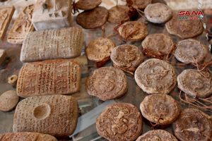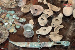 العامل جابر خزام قال في تصريح لـ سانا: “نحن مجموعة من الورشات نعمل بالترميم والإصلاح ضمن منزل بحمص القديمة بالقرب من كنيسة أم الزنار وأثناء قيامنا بإزالة الأنقاض وجدنا الحقيبة التي تحتوي قطعاً أثرية وعلى الفور تم التواصل مع دائرة الآثار لاستلامها”.