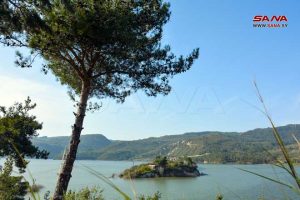جزيرة القصر أو المرح تقع وسط بحيرة سد 16 تشرين في قرية وطى الشير التابعة لناحية البهلولية شمال محافظة اللاذقية.. جزيرة أشبه بالخيال وحكايات كان يا ما كان وتعد من أصغر الجزر المأهولة في الشرق الأوسط على مساحة تبلغ 12 دونماً وتسكن فيها سبع عائلات تعتمد على الزراعة كمصدر أساسي للرزق.