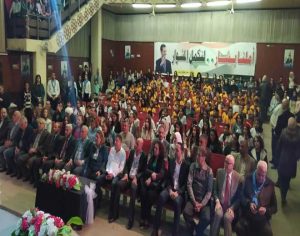 كرم فرع حمص لمنظمة طلائع البعث اليوم 120 تلميذاً من الفائزين في مسابقات رواد طلائع البعث على مستوى سورية وفرع حمص لعام 2021 بمختلف الاختصاصات ضمن حفل تخللته فقرات شعرية وفنية وذلك على مسرح عبد الحميد الزهراوي بحمص.