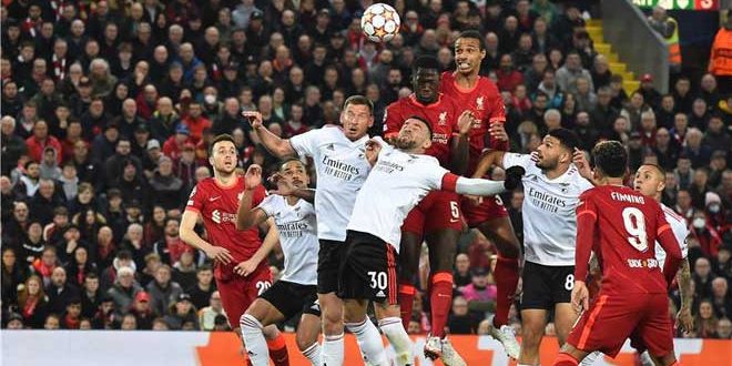 تعادل فريق ليفربول الإنكليزي مع بنفيكا البرتغالي بنتيجة 3-3 في إياب ربع نهائي دوري أبطال أوروبا لكرة القدم على ملعب أنفيلد ليتفوق بهذا التعادل بعد فوزه ذهاباً بنتيجة 3-1.