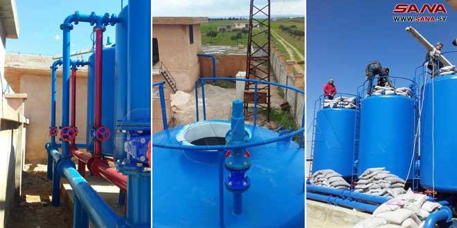 وبين سليمان أنه تم تركيب المضخة الغاطسة بعمق 245 متراً وغزارة تصل لـ 50 متراً مكعباً بالساعة وتركيب برج تبريد وإعادة تأهيل الخزانات الأرضية والفلاتر الرملية بالكامل مع توصيلاتها بانتظار وصول المضخات الأفقية ليتم تركيبها لاحقاً.