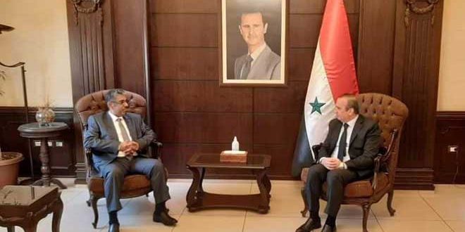 بحث وزير الإدارة المحلية والبيئة المهندس حسين مخلوف مع القائم بأعمال سفارة دولة الإمارات العربية المتحدة بدمشق عبد الحكيم النعيمي سبل تعزيز علاقات التعاون المشترك بين البلدين الشقيقين في مختلف المجالات بما يعود بالنفع لشعبيهما.