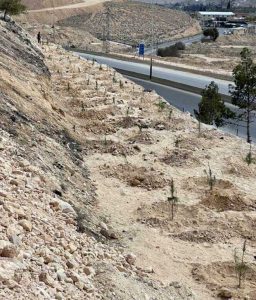 وتشجير أكثر من 9 الاف شجرة على المتحلق الشمالي وطريق معربا وشارع التل الرئيسي ولا تزال الجمعية مستمرة بزراعة الأشجار لتصل إلى 15 ألف شجرة.