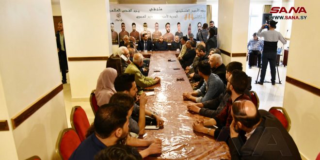 وأكد مسؤول العلاقات بحركة الجهاد الفلسطينية في سورية ابراهيم موعد أن أبناء الشعب الفلسطيني مستمرون بالصمود والمقاومة بكل الأشكال في مواجهة همجية الاحتلال ومصرون على حقوقهم في التحرير والعودة مهما طال الزمن لافتاً إلى ما يقوم به الأسرى من أعمال بطولية هزمت العدو وكسرت هيبته.