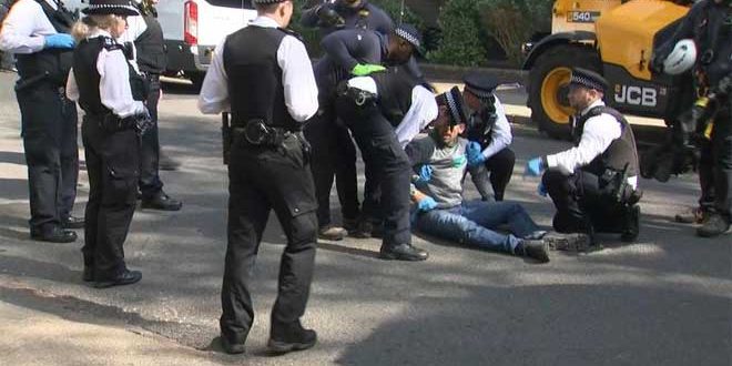 اعتقلت الشرطة البريطانية في لندن اليوم ستة أشخاص من المتظاهرين على تزايد الاستثمارات في الوقود الاحفوري.