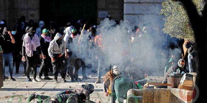 وكانت قوات الاحتلال الإسرائيلي اقتحمت أمس المسجد الأقصى المبارك واعتدت على المصلين بالرصاص وقنابل الغاز السام ما أدى إلى إصابة أكثر من 153 فلسطينيا واعتقال نحو 400 آخرين.