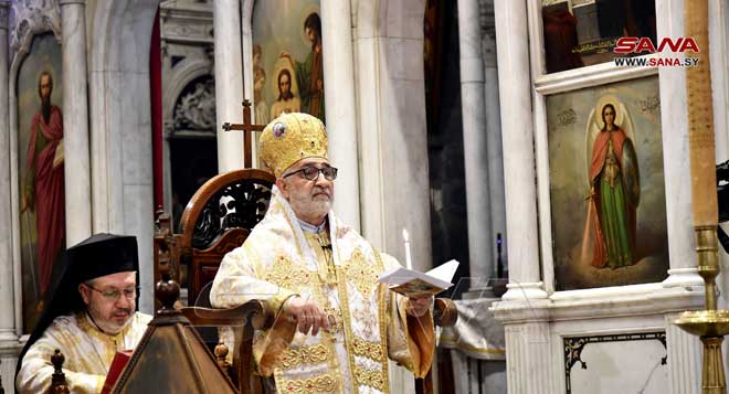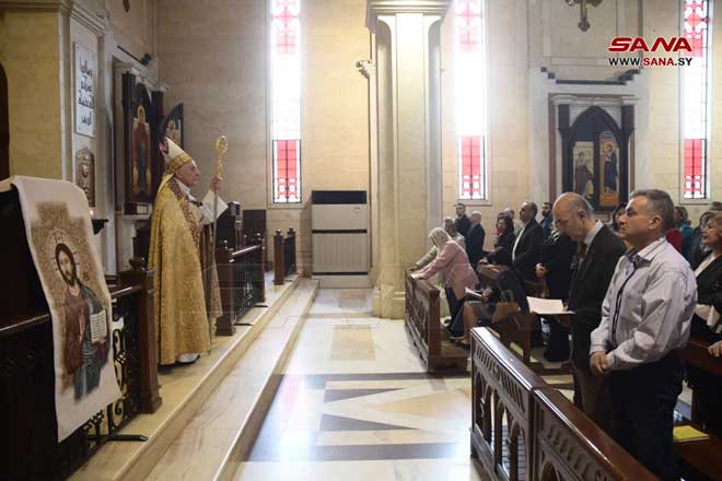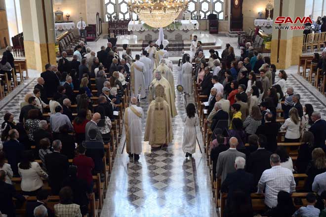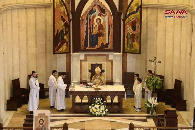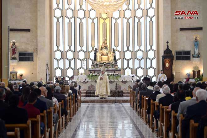 ففي كاتدرائية سيدة النياح للروم الملكيين الكاثوليك البطريركية في حارة الزيتون بدمشق أقيم قداس ديني ترأسه غبطة البطريرك يوسف العبسي بطريرك أنطاكية وسائر المشرق للروم الملكيين الكاثوليك وعاونه النائب البطريركي العام المطران نيقولا أنتيبا وعدد من الكهنة الأجلاء بينما قامت جوقة الكاتدرائية بخدمة القداس.