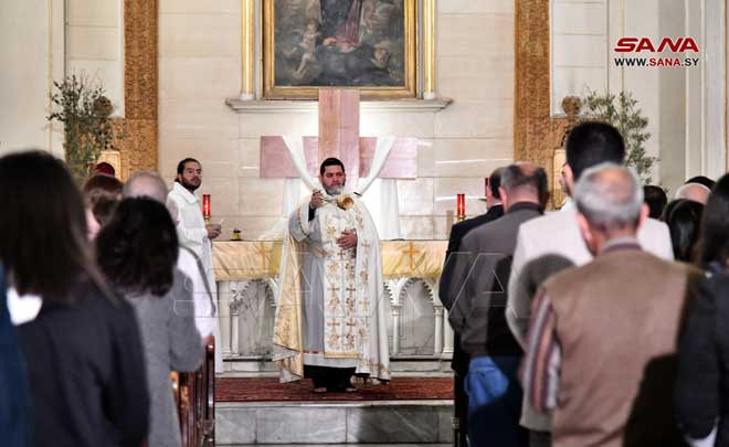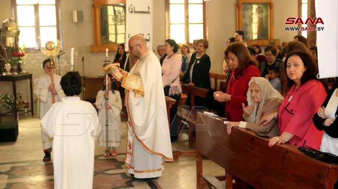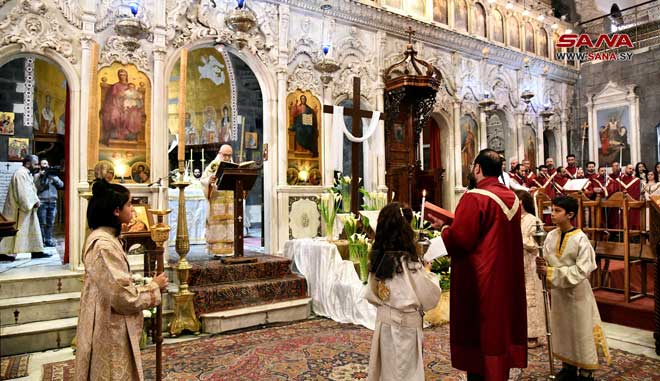 احتفلت الطوائف المسيحية في سورية التي تتبع التقويم الغربي اليوم بعيد الفصح المجيد عيد قيامة السيد المسيح رسول المحبة والسلام بإقامة الصلوات والقداديس في الكنائس ودور العبادة.
