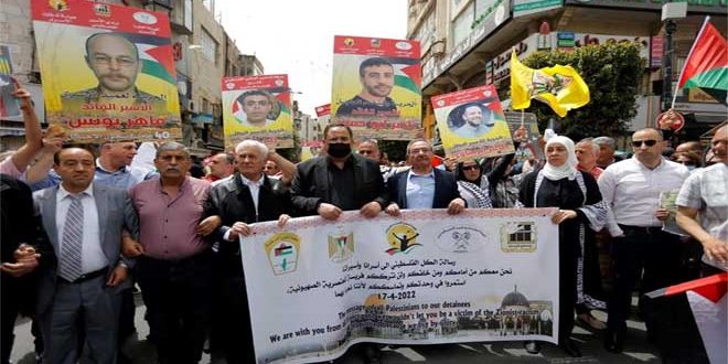 كما ردد المشاركون شعارات تؤكد مواصلتهم درب النضال حتى دحر الاحتلال وتطالب المجتمع الدولي بتحرك فوري لوقف انتهاكات الاحتلال بحق الأسرى وفي مقدمتها الإهمال الطبي المتعمد .