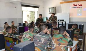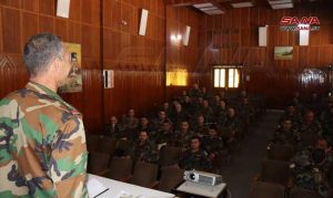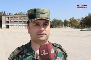 وفي إحدى قاعات التدريب وجه المدرب أحمد التحية لأرواح الشهداء الذين بذلوا أرواحهم للوصول إلى جلاء المستعمر عن وطننا ولأبطال الجيش العربي السوري الذين يقدمون التضحيات في سبيل صون سيادة الوطن.