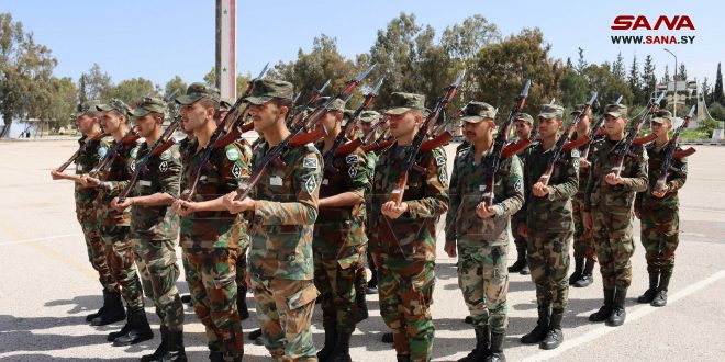 وعاهد العميد أحمد باسمه واسم كوادر الكلية الشعب العربي السوري وقائد الوطن على الاستمرار بالتدريب وتقديم العلوم والمعارف العسكرية لرواد هذا الصرح ليكونوا جنداً أشداء في صفوف الجيش العربي السوري للذود عن تراب الوطن والحفاظ على سيادته واستقلاله الذي حققه أجدادنا عبر بطولاتهم وتضحياتهم.