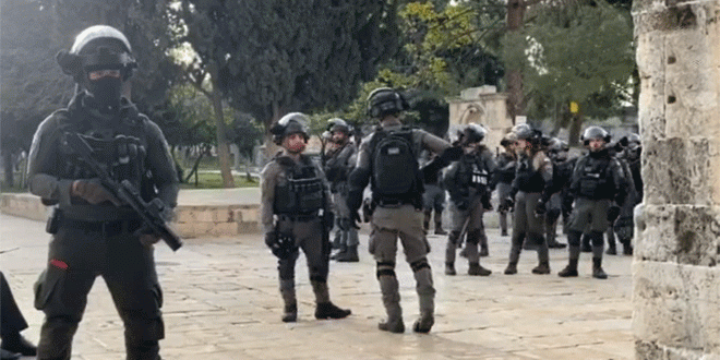 اقتحمت قوات الاحتلال الإسرائيلي اليوم المسجد الاقصى واعتدت على الفلسطينيين فيه وأجبرتهم على إخلاء ساحاته فيما وفرت الحماية لعشرات المستوطنين لاقتحامه.